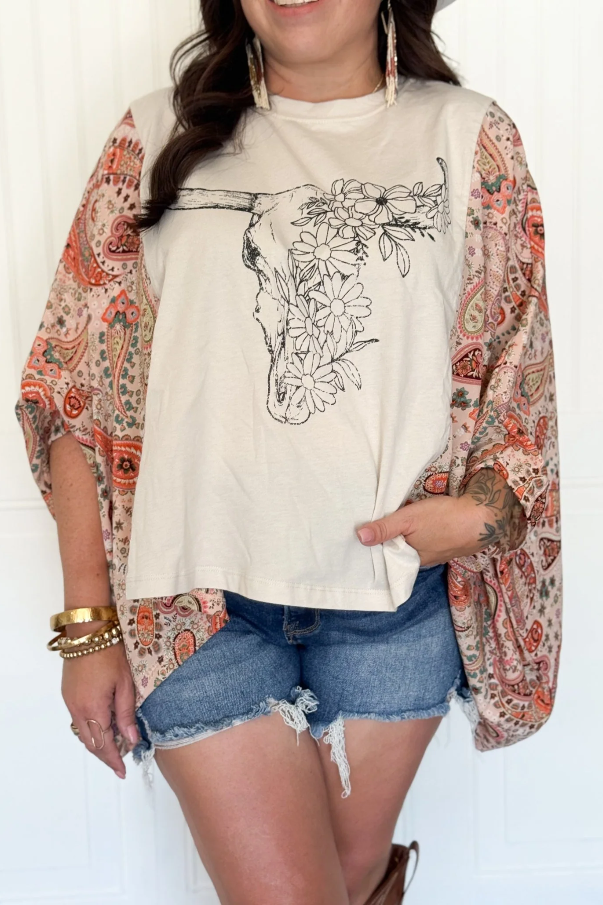 Floral Longhorn Boho Graphic Tee