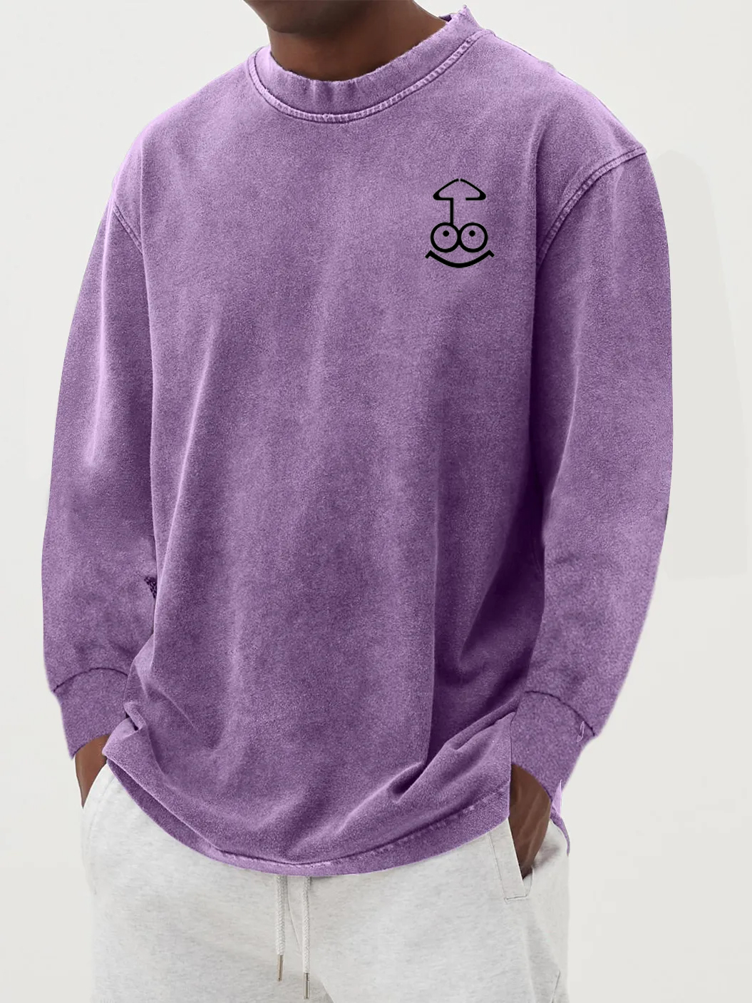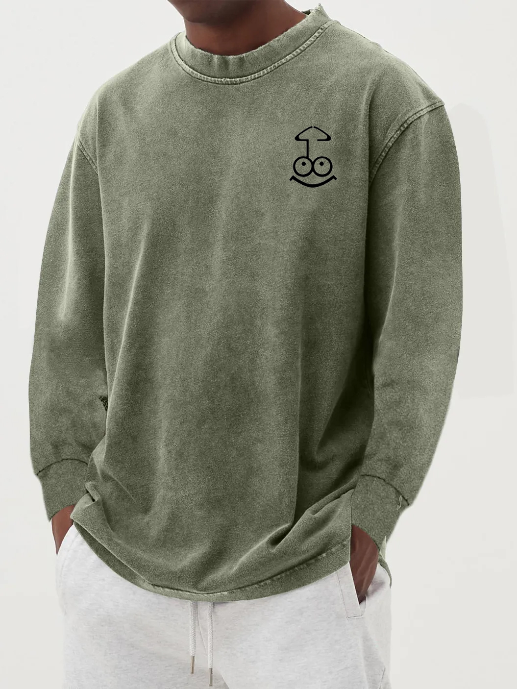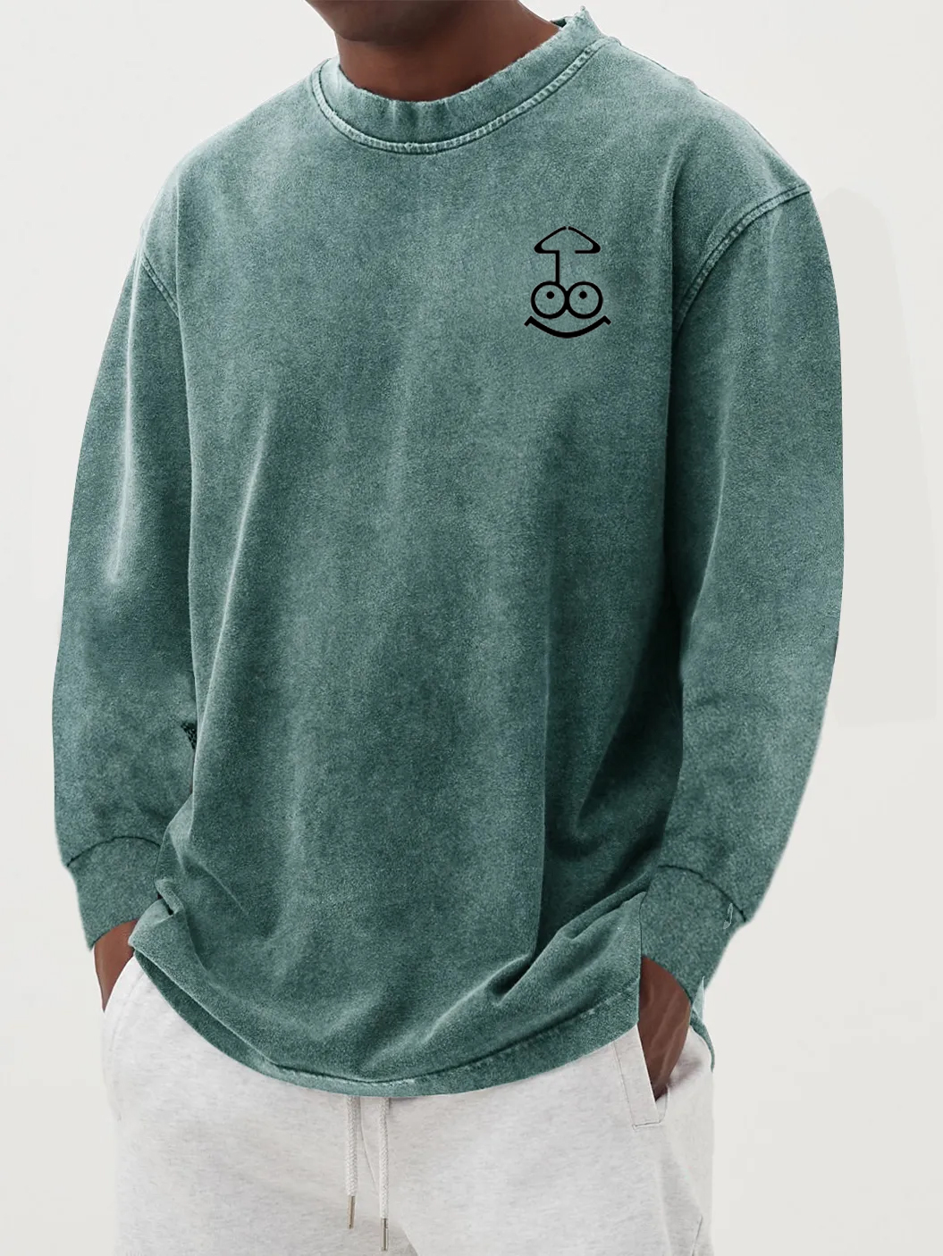 Men's Cotton Vintage Washed Distressed Palm Tree Long-sleeved T-shirt