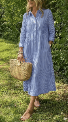The Long Sleeve Striped Lapel Button Down Dress is designed for the modern woman who cares about sophistication and style. The elegant Maxi long dress is perfect for any occasion.