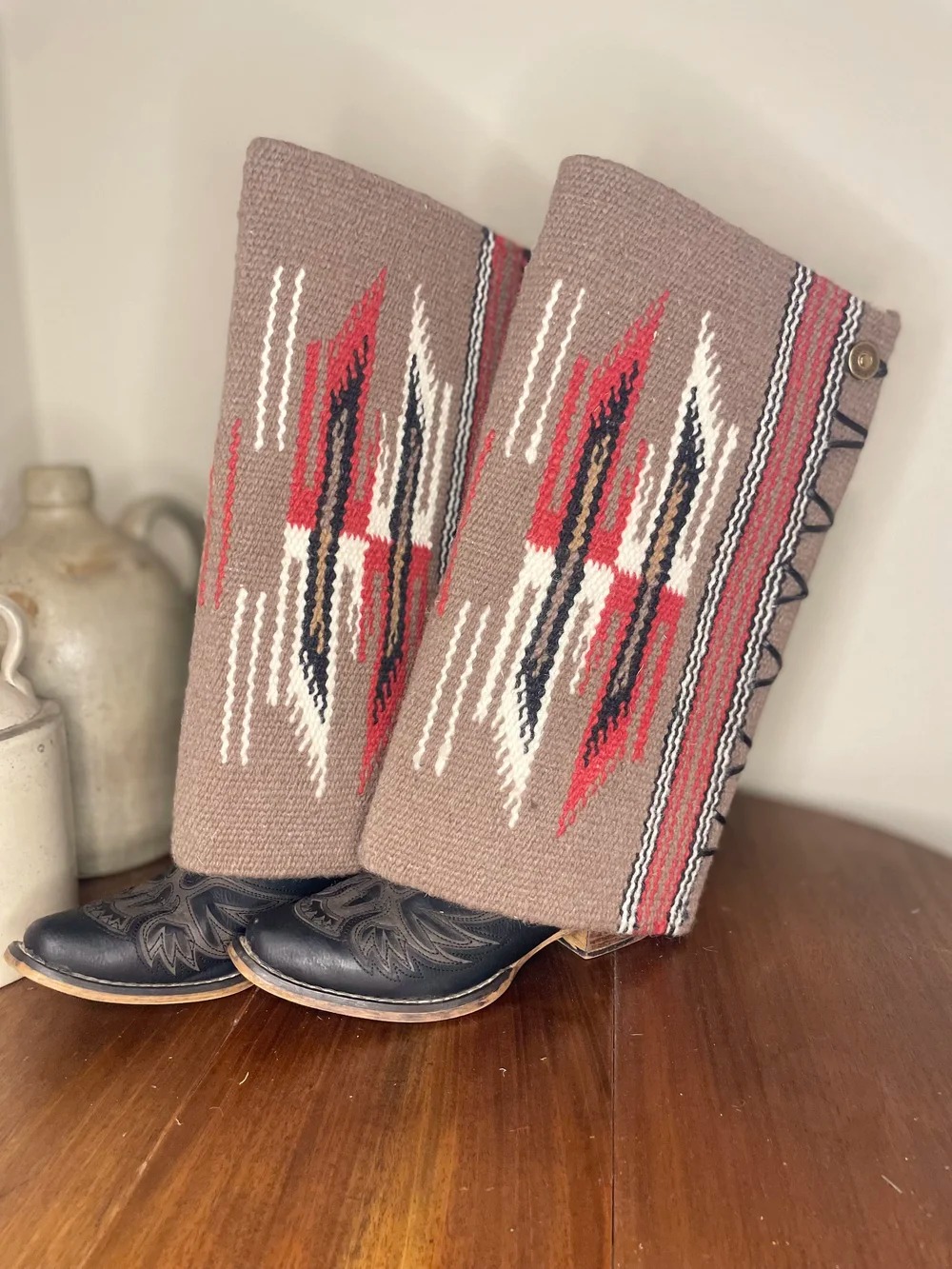 Embrace bold Western style with these Aztec print fringe boot cuffs, designed to transform any pair of boots into a statement piece. Perfect for layering over cowboy boots or ankle boots, they add instant rustic charm to denim shorts, maxi dresses, or Western-inspired skirts. Whether you’re pairing them with a denim mini skirt and a wide-brim cowboy hat for a full Western look or adding a touch of flair to a casual outfit, these boot cuffs blend comfort and style seamlessly. They’re a versatile accessory that elevates your wardrobe with authentic Western spirit, making them a must-have for any cowgirl enthusiast. Measures ~Height: 15" SPU:ACCJ25110724
