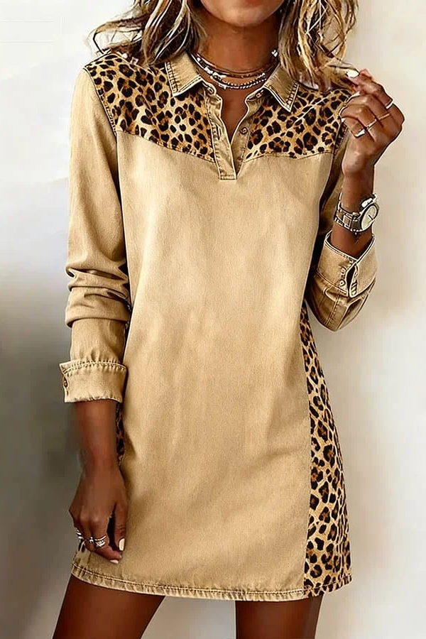SPU:DRSY26021103 Fabric: Leopard print patchwork Fit: Slightly A-line Neckline: V-neck Note: Size: please check measurements carefully Please allow 0.5-1" difference due to manual measurement Different monitor settings means colors may differ slightly 1" = 2.54cm