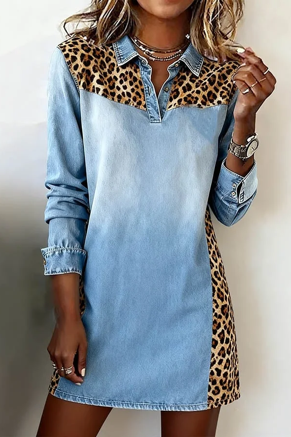 The skirt length, reaching mid-thigh, strikes a balance between a sleek and energetic look. It flatters the legs without restricting movement, allowing for unrestricted everyday activities. The cuffs can be rolled up or folded down to create different styles, adapting to various temperatures and personalities, increasing styling versatility. The leopard print side seams create visual depth, softening the "heavy" feel of the denim skirt and making the overall look lighter and more dynamic.