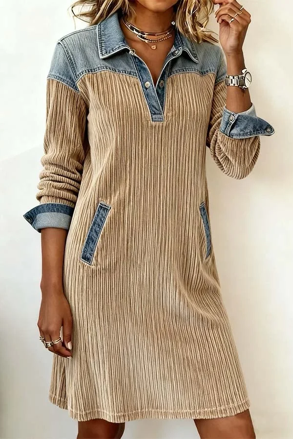 Made from classic ribbed fabric, this skirt is soft and skin-friendly with a vintage texture. It's warm and stylish for autumn and winter, with a moderate drape and wrinkle-resistant properties. The classic denim shirt collar design, paired with metal buttons, recreates an American retro workwear feel, setting it apart from the monotony of ordinary corduroy skirts and giving it a casual chic vibe. It's flattering for all body types, offering excellent coverage for the waist, abdomen, and hips, and is suitable for various body shapes.
