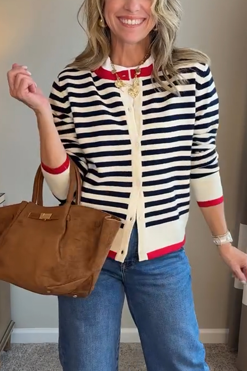 New Arrivals🔥 Crew Neck Color Blocked Striped Cardigan