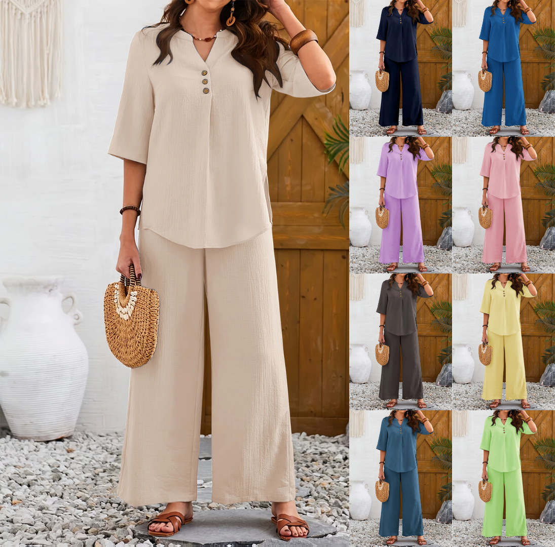 Experience the perfect blend of comfort and style with our women's Cotton Casual Loose Suit,  both made from soft, breathable material to keep you looking stylish and relaxed. Showcase your confidence with this chic two-piece 🌟👚👖