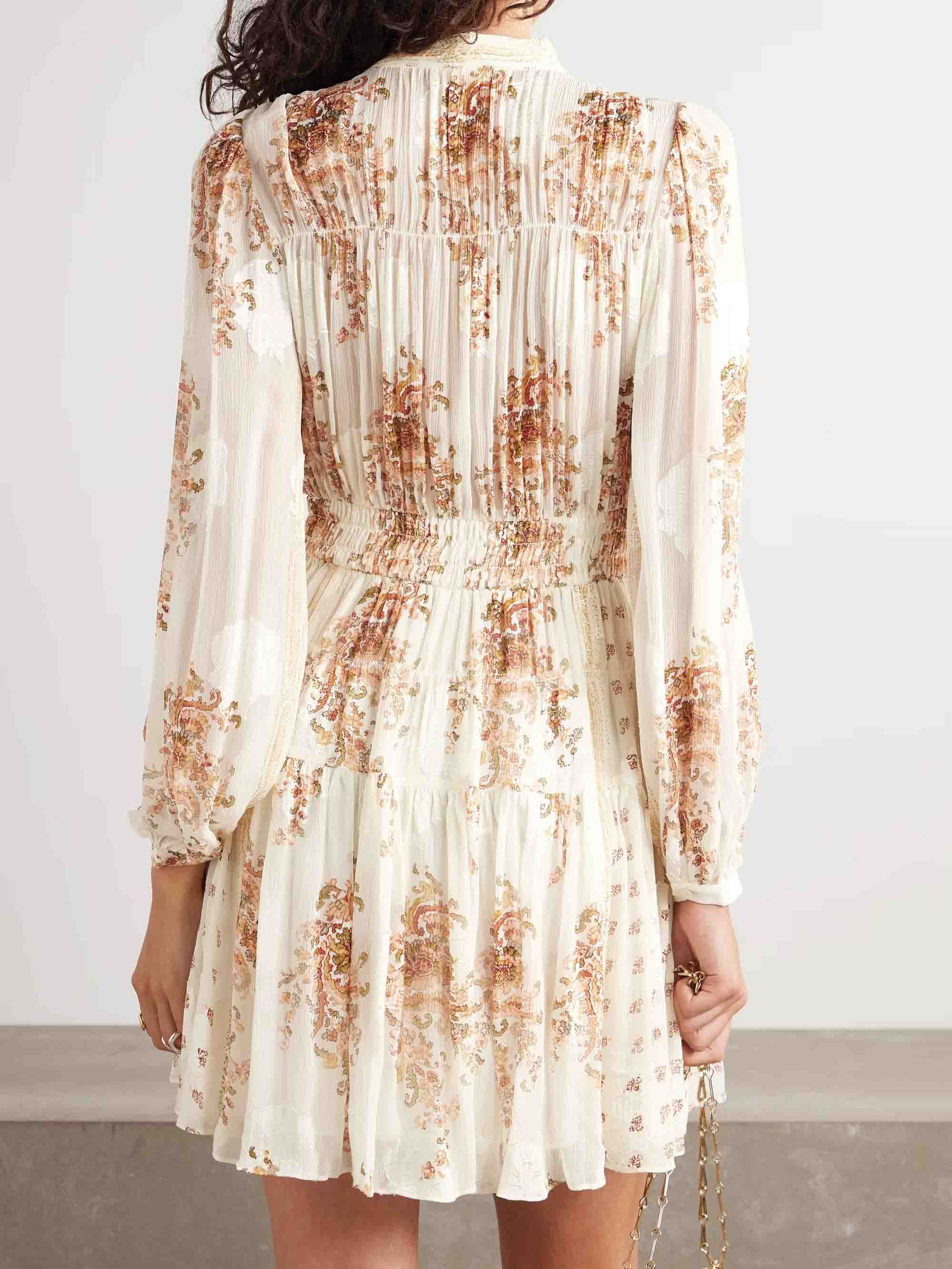 Elegant Tie Neck Bohemian Floral Print Mini Dress