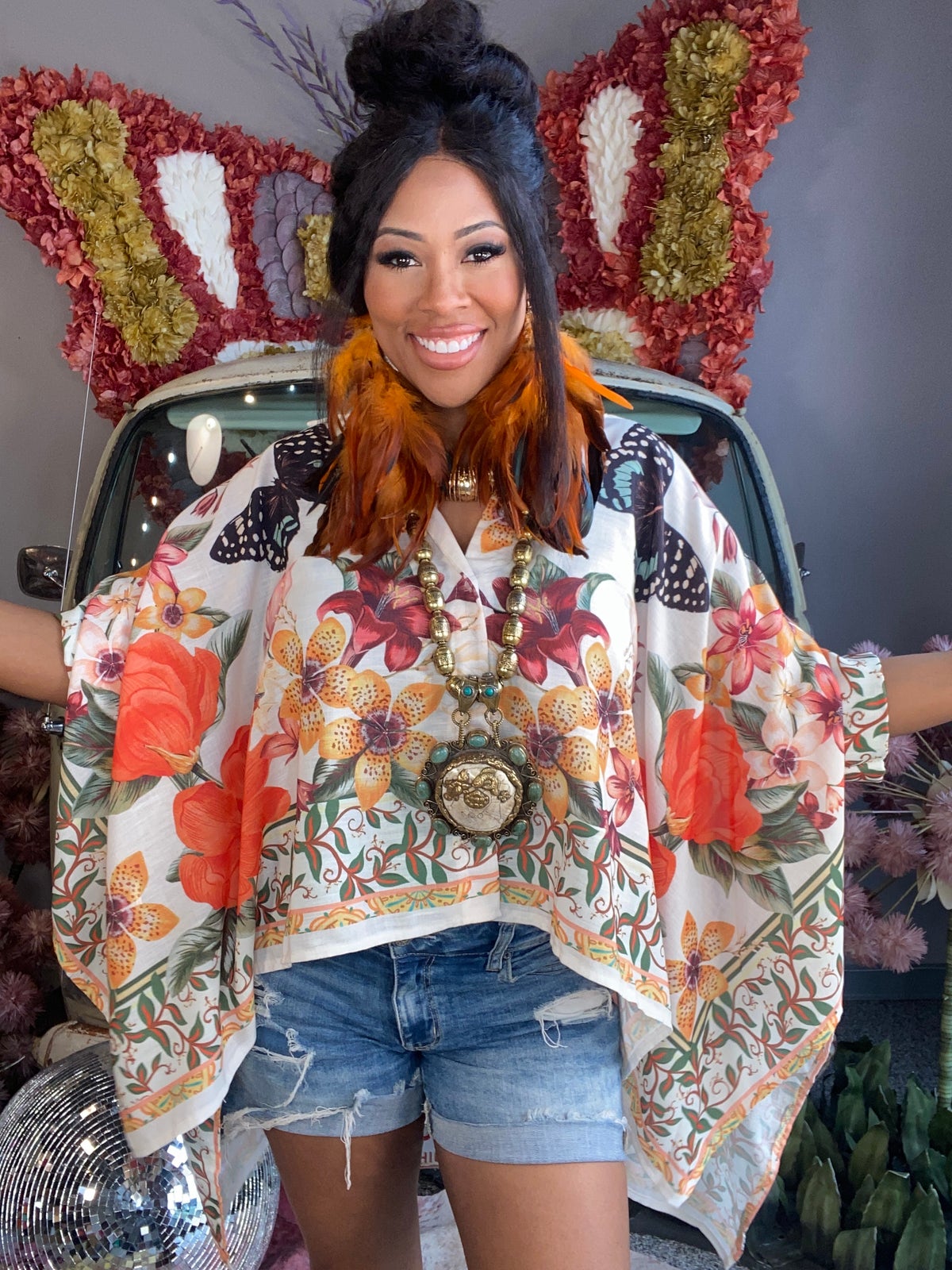 Size:One Size Fits MostModel is Wearing a Size OSModelHeight: 5'2"Bust: 34"Waist: 27"Hips: 36"