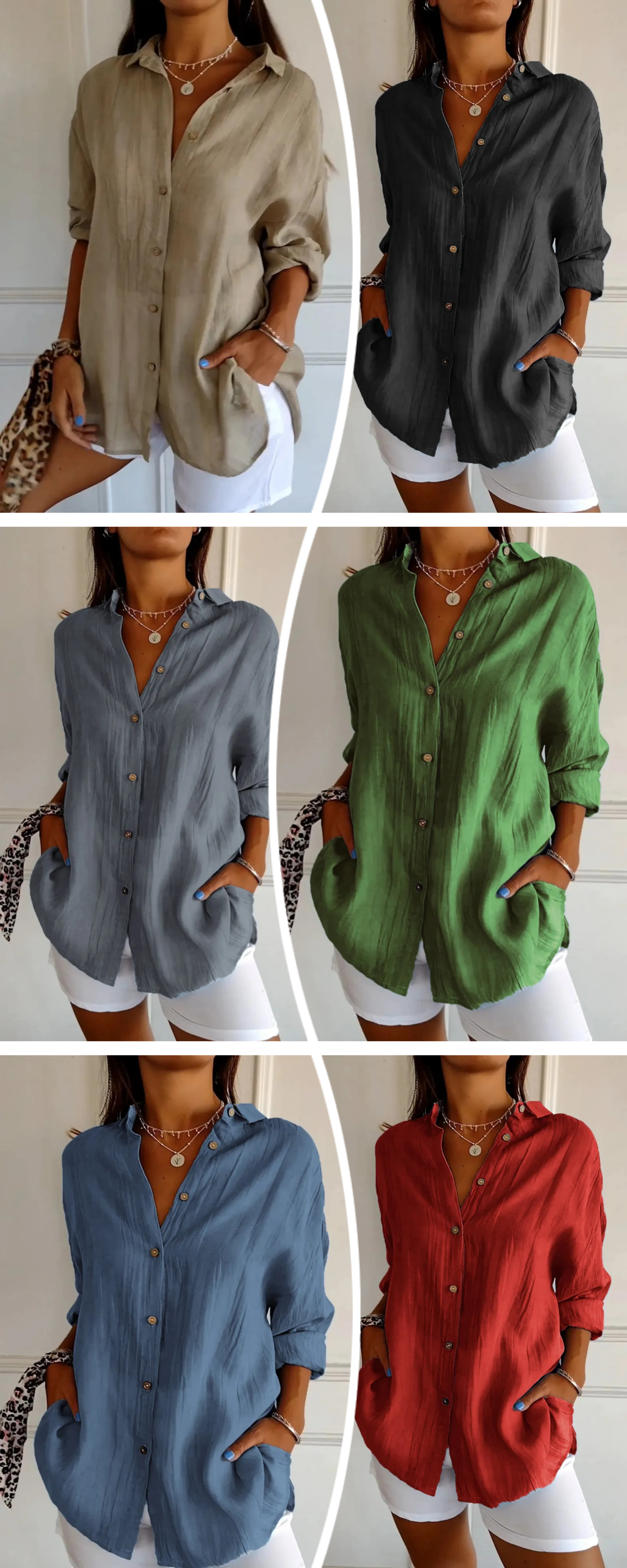 Upgrade your wardrobe with our Classic Pleated Textured Single-Breasted Lapel Shirt for Women, elevating your style and keeping you comfortable during the spring and summer seasons.