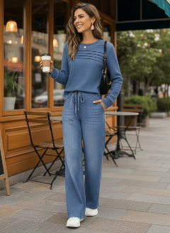 Experience the perfect blend of comfort and style with our comfortable fit two-piece set. The set consists of a crew neck top and matching trousers, both made from soft, breathable material to keep you looking stylish and relaxed.