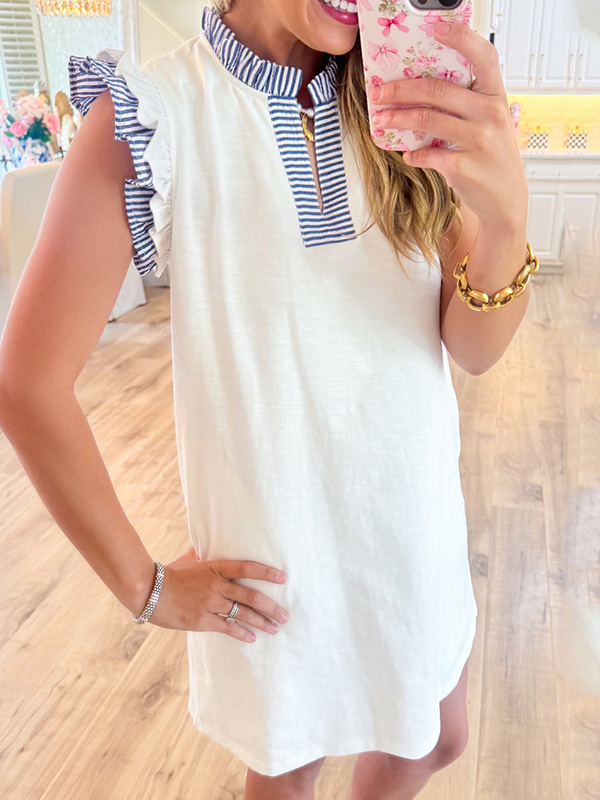 NEW🔥 Ruffle Hem Patchwork Mini Dress- Tax Free