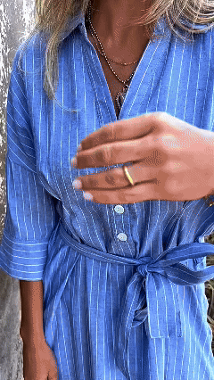 NEW🔥 Striped Lapel Button Down Belt Dress