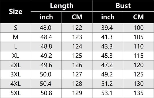 SIZE CHART: