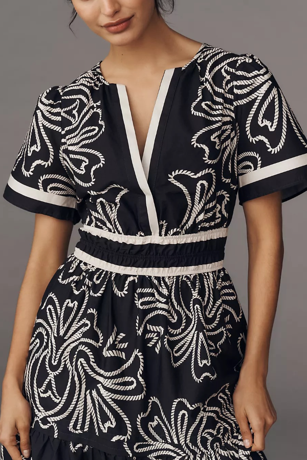 SPU:DRSY2590804 Neck: V-neck Sleeves: Short Material: Printed