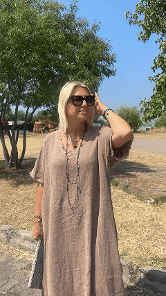 Timeless Elegance: Vintage Tassel Trimmed Cotton Linen Dress