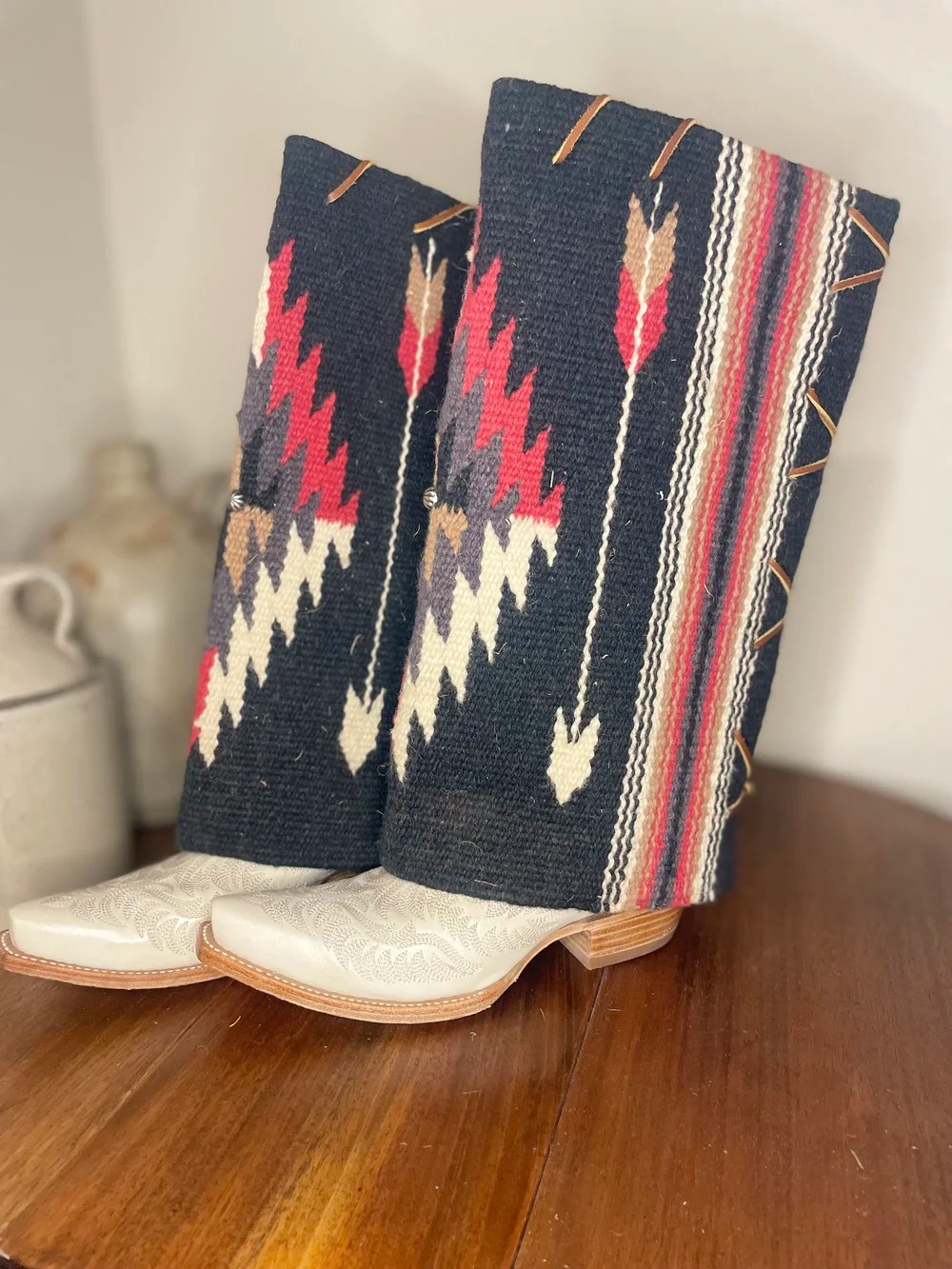 Embrace bold Western style with these Aztec print fringe boot cuffs, designed to transform any pair of boots into a statement piece. Perfect for layering over cowboy boots or ankle boots, they add instant rustic charm to denim shorts, maxi dresses, or Western-inspired skirts. Whether you’re pairing them with a denim mini skirt and a wide-brim cowboy hat for a full Western look or adding a touch of flair to a casual outfit, these boot cuffs blend comfort and style seamlessly. They’re a versatile accessory that elevates your wardrobe with authentic Western spirit, making them a must-have for any cowgirl enthusiast. Measures ~Height: 15" SPU:ACCJ25110723