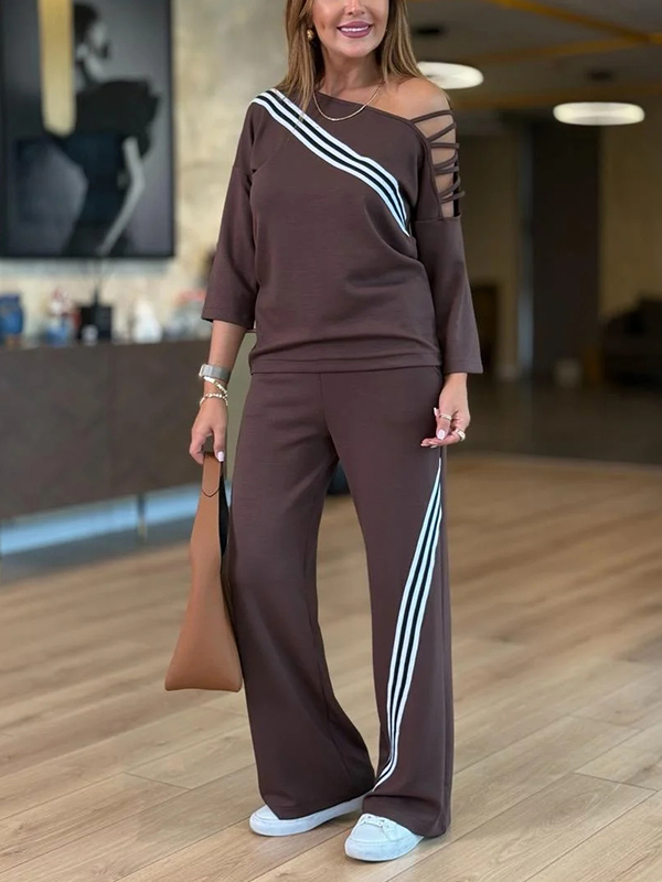 NEW🔥 Women's Soft Striped Design Set with Wide Fit Pants