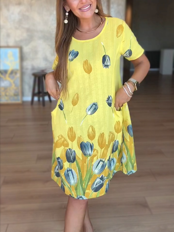 Bohemian Style Ethnic Print Short-sleeved Mini Dress
