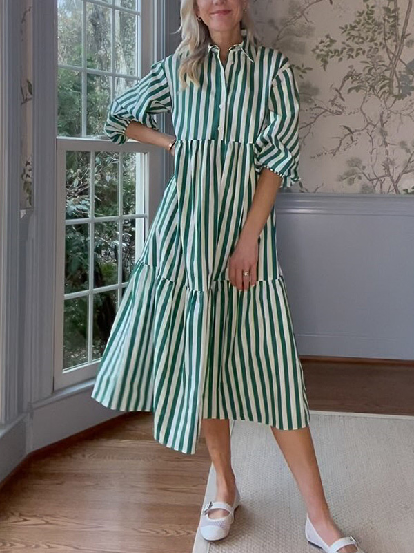 NEW🔥 Thick Striped 3/4 Blouson Sleeves Dress