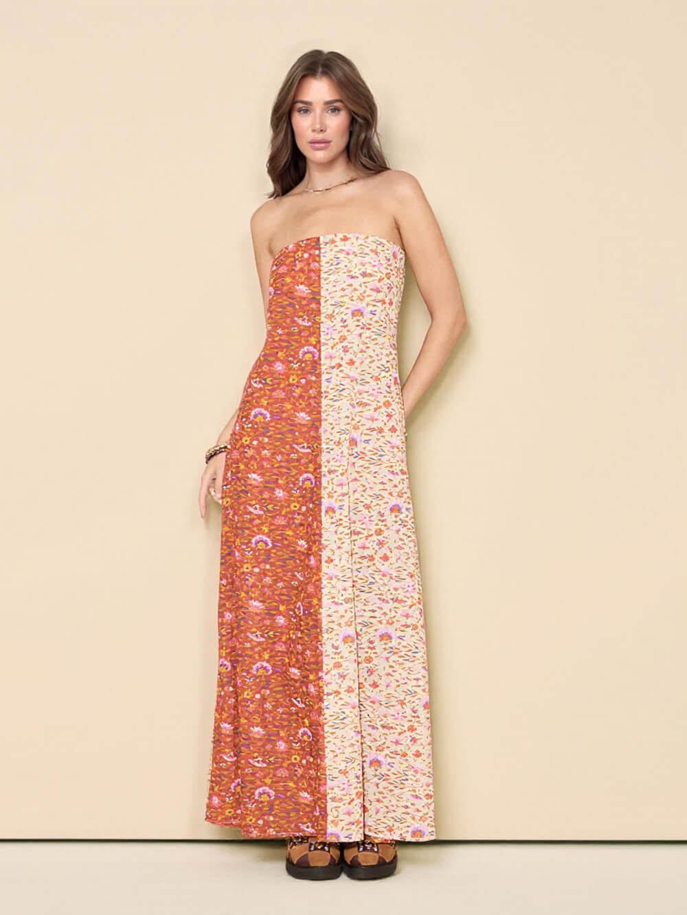 Fashion Floral Printed Strapless Maxi Dress