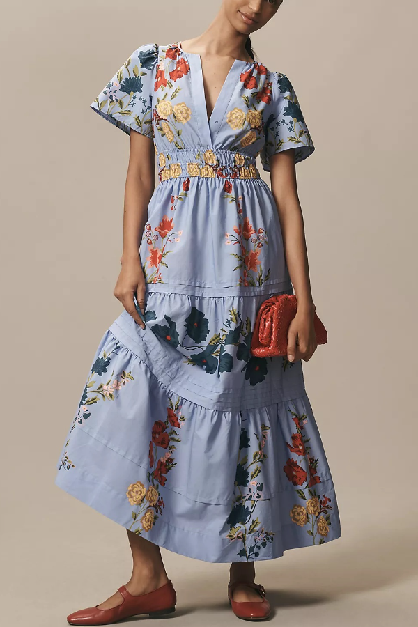 Unique Ethnic Floral Print Flowing Maxi Dress