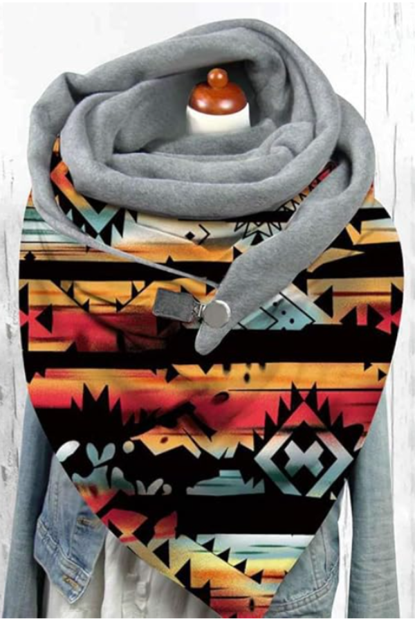 Geometric Universal Buckle Comfortable Double-Layer Prints Scarf