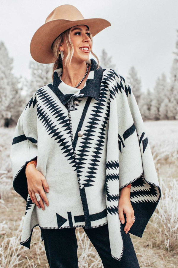 Women's Western Cowboy Gray Print Sherpa Warm Neck Hood