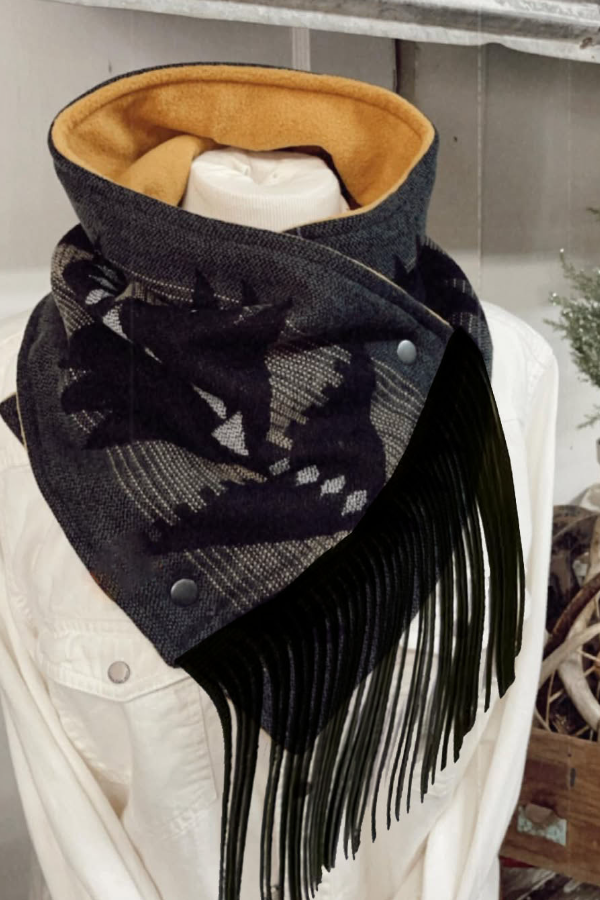 Women's Western Fringed Scarf - Black/White Aztec Pattern