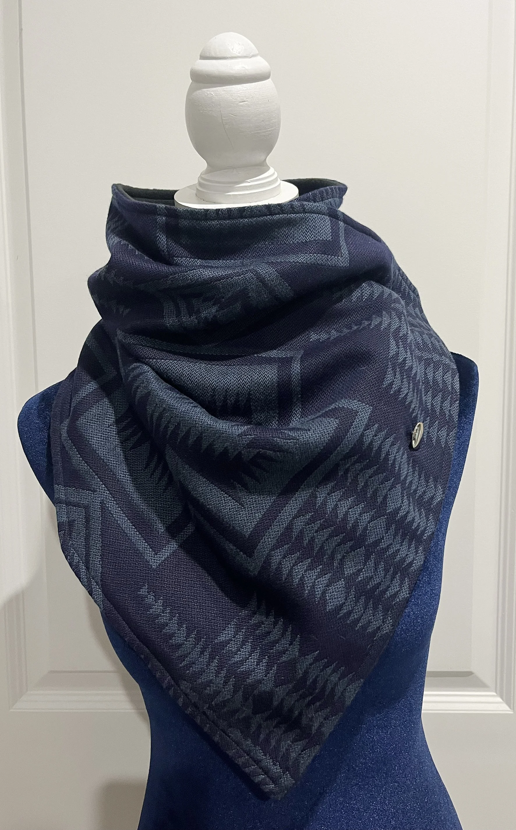 Women's Western Cowboy Blue Aztec Warm Neck Hood
