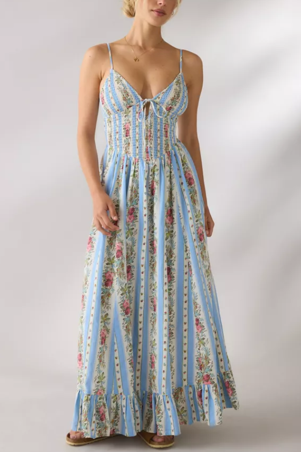 Details The adjustable waist tie creates a sexy deep V-neck while flattering the neckline. It suits different bust shapes, balancing sexiness and comfort. The upper body features a high-elasticity gathered design that powerfully cinches the waist, mimicking the effect of a vintage corset to instantly create an hourglass figure and effectively conceal any unwanted bulges around the waist and abdomen. The skirt flares out naturally from the waist, creating a flowing, graceful silhouette that perfectly conceals wide hips and leg imperfections, making it suitable for pear-shaped, apple-shaped, and other body types.