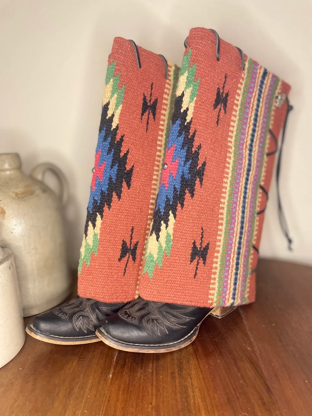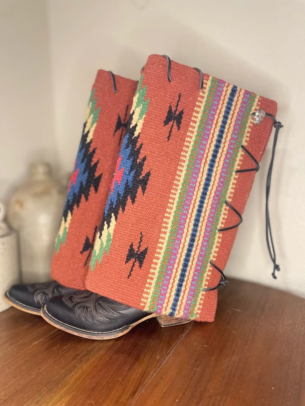 Embrace bold Western style with these Aztec print fringe boot cuffs, designed to transform any pair of boots into a statement piece. Perfect for layering over cowboy boots or ankle boots, they add instant rustic charm to denim shorts, maxi dresses, or Western-inspired skirts. Whether you’re pairing them with a denim mini skirt and a wide-brim cowboy hat for a full Western look or adding a touch of flair to a casual outfit, these boot cuffs blend comfort and style seamlessly. They’re a versatile accessory that elevates your wardrobe with authentic Western spirit, making them a must-have for any cowgirl enthusiast. Measures ~Height: 15" SPU:ACCJ25110727