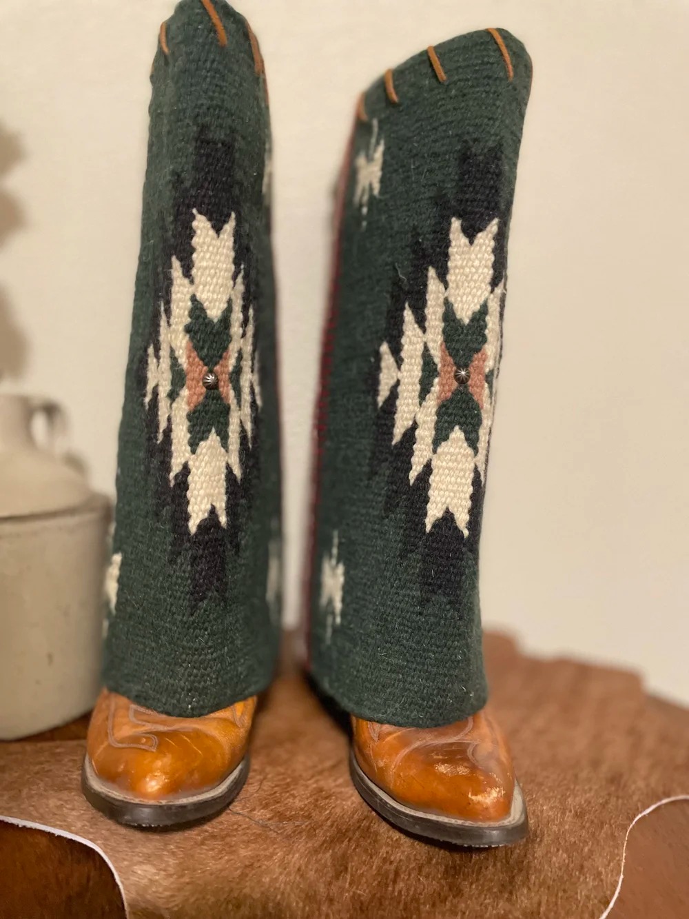 Embrace bold Western style with these Aztec print fringe boot cuffs, designed to transform any pair of boots into a statement piece. Perfect for layering over cowboy boots or ankle boots, they add instant rustic charm to denim shorts, maxi dresses, or Western-inspired skirts. Whether you’re pairing them with a denim mini skirt and a wide-brim cowboy hat for a full Western look or adding a touch of flair to a casual outfit, these boot cuffs blend comfort and style seamlessly. They’re a versatile accessory that elevates your wardrobe with authentic Western spirit, making them a must-have for any cowgirl enthusiast. Measures ~Height: 15" SPU:ACCJ25110729