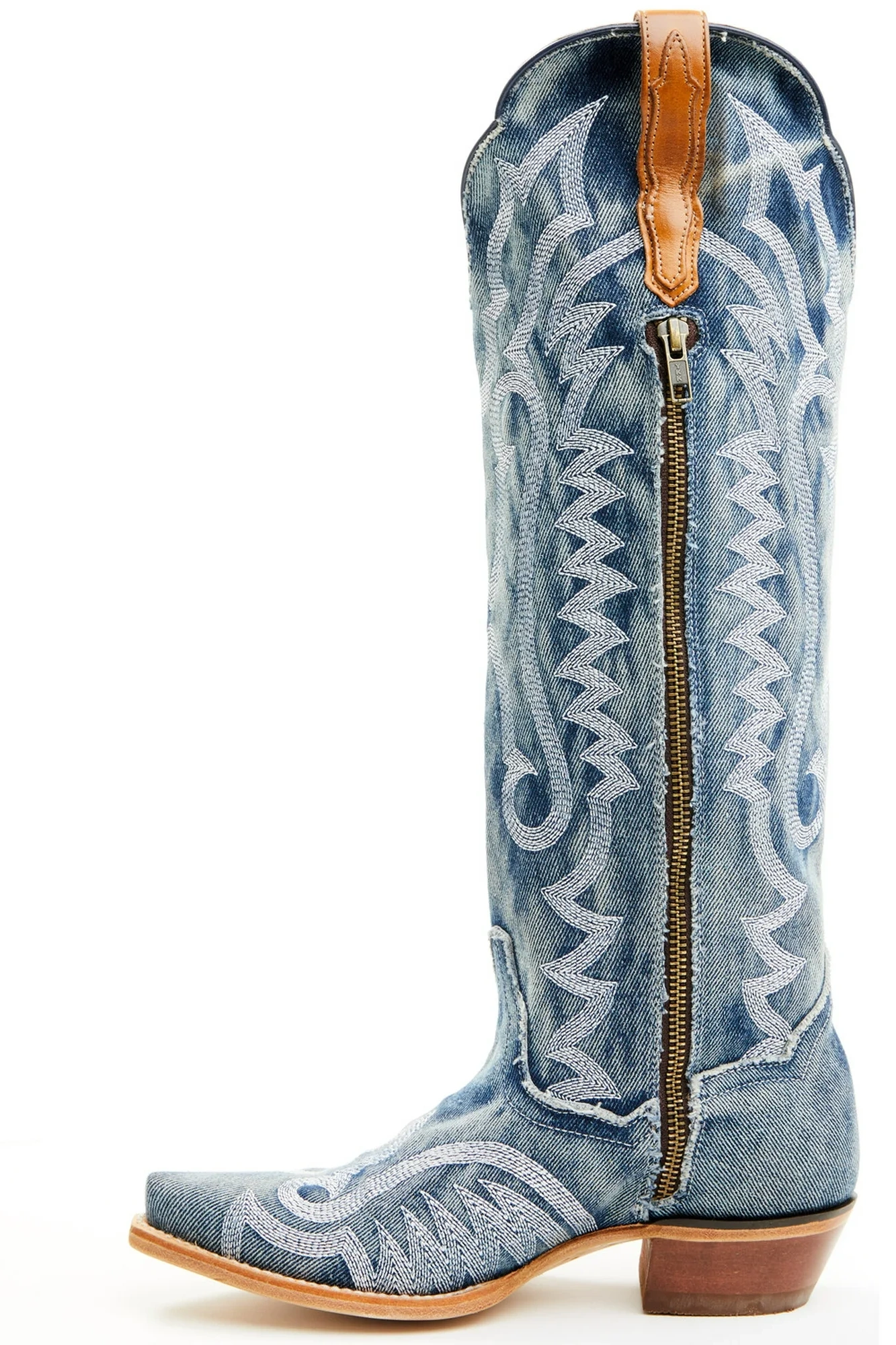 Women's Pointed Toe Denim Mid-calf Boots